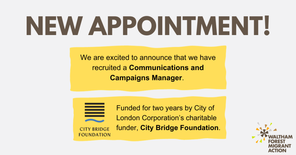Joseph will be working for us on a part-time basis to raise awareness of the issues facing migrants, asylum seekers and refugees in the borough, to expand our solidarity-building efforts, and to strengthen WFMA’s wider campaigning and communications work.