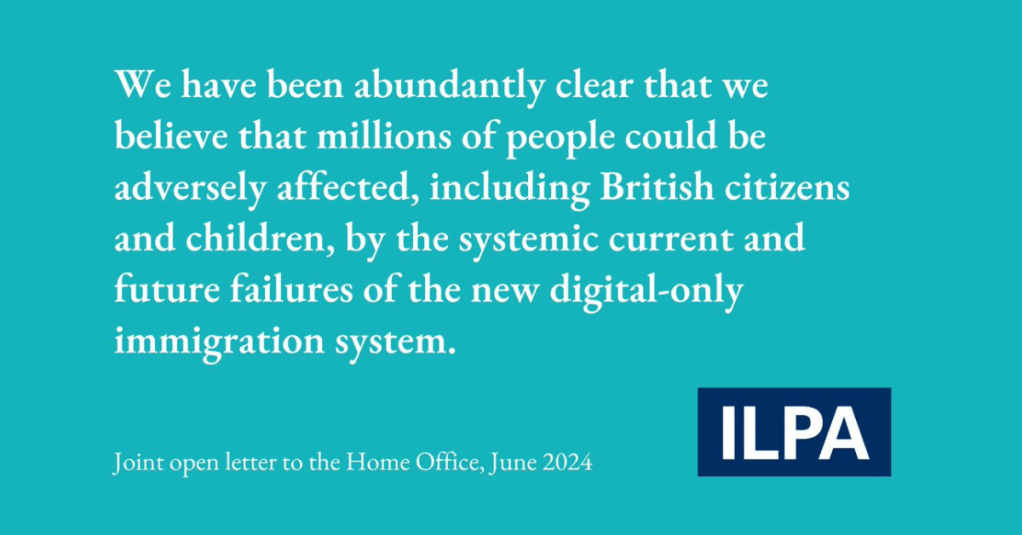 We share ILPA’s view that the Home Office must learn the lessons from issues with the EU Settlement Scheme and the Windrush Scandal and take action to ensure every person can prove and access their status without technological error whenever and wherever they need to. Failure to do so will place millions at risk of facing the hostile environment