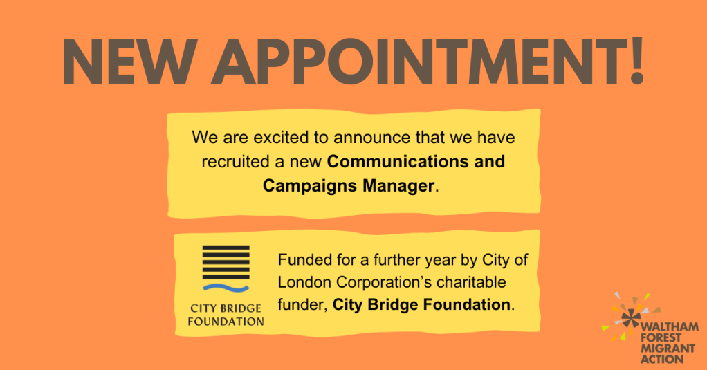 Every penny you give will be appreciated and go towards helping us give urgently needed support to migrants in Waltham Forest through our Support Centre and other work.