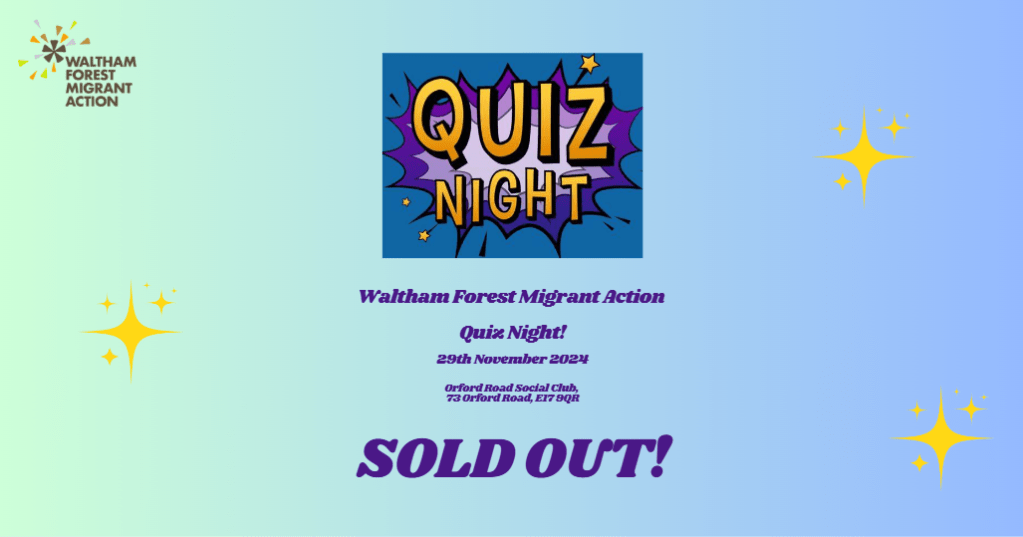 We are really excited to host a quiz night on 29th November at the Orford Road Social Club, 73 Orford Road, E17 9QR. Get your thinking head on and join us for what promises to be a fun night. THIS EVENT IS NOW SOLD OUT.