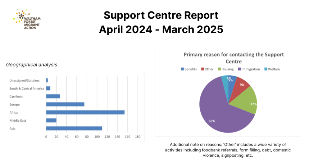 We have continued to work with RAMFEL (the Refugee and Migrant Forum for Essex and London), who provide support with more complex immigration cases.