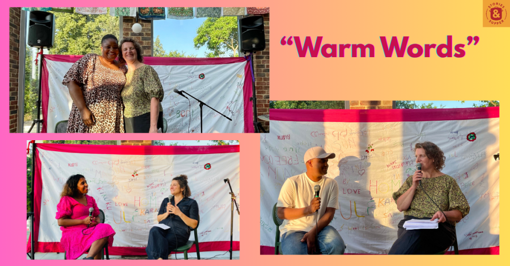 We also joined out sister organisation, Stories and Supper, at their ‘Warm Words’ event on Wednesday 18th June, where they shared conversations, poetry and food from members of the Stories & Supper community of refugees, people seeking asylum and local residents.