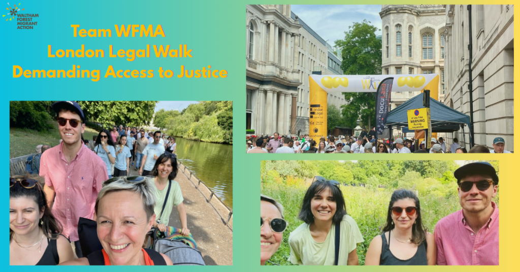 This year, WFMA once again took part in the London Legal Walk (17th June), raising awareness about legal aid. The substantial cuts to legal aid that we have witnessed over the last few decades mean that thousands of migrants are unable to afford the legal representation they need to navigate the increasingly complex immigration system – and by extension have no access to justice.